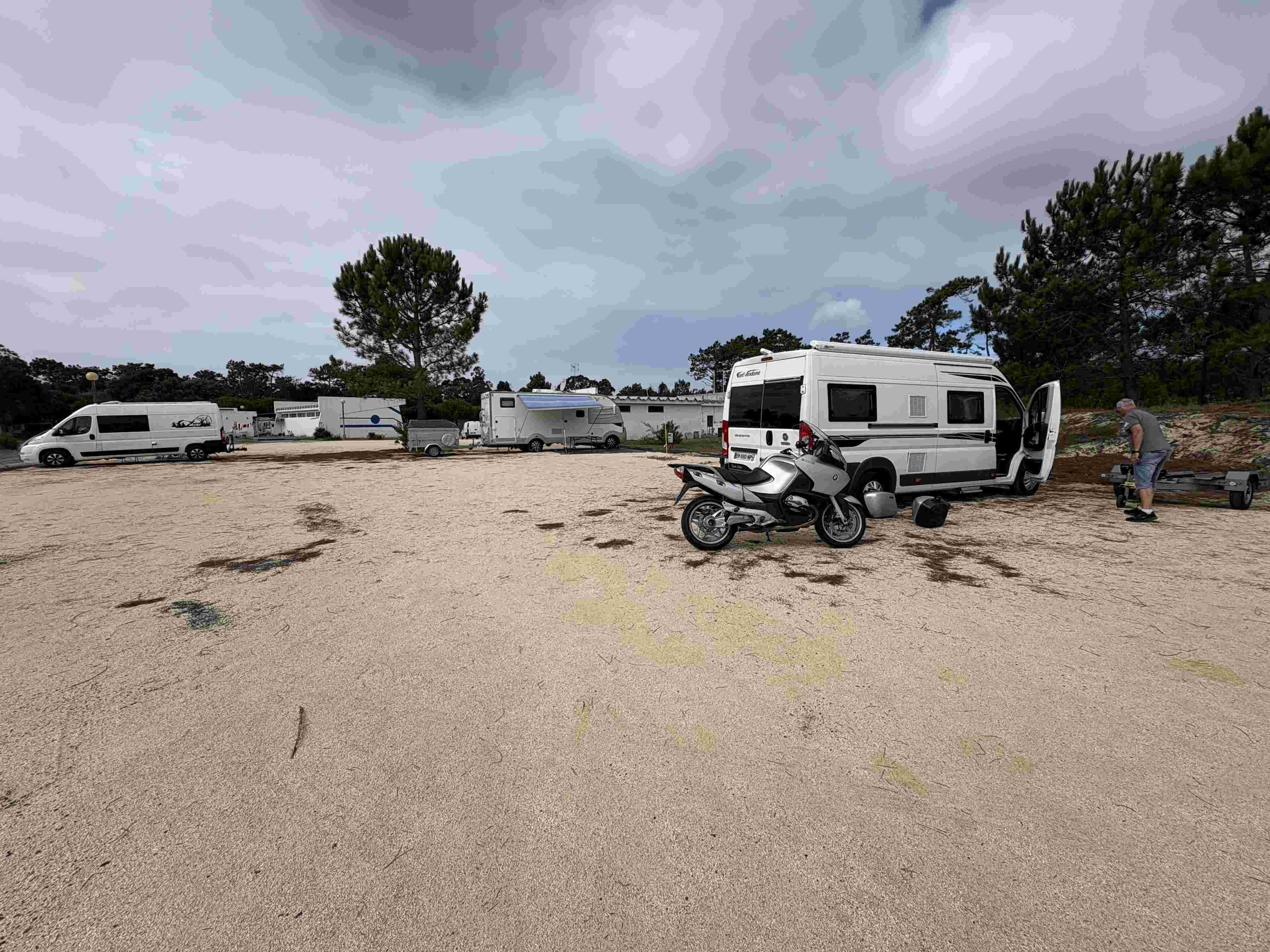 Le Parque de Campismo Da Gafanha Da Nazaré, est un tout petit camping avec deux parties. La première avec des arbres, et la seconde un terre plein sans arbre et sans délimitation où vous vous placez comme vous le souhaitez. Les sanitaires sont d'un autre âge, mais ils font ce pourquoi ils ont été créés. Un petit bar fait office de réception, et il n'y a rien d'autre. 19€ la nuitée avec l'électricité on ne va pas se plaindre. La propriétaire est très sympathique, elle parle français mieux que moi le portugais,et nous explique tout ce qu'il y a à voir dans le secteur, sans qu'on lui demande. Rien que pour çà c'est très bien de nous y être arrêtés.