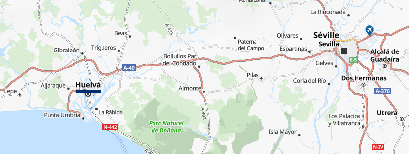 Nous nous arrêtons à Huelva première grande ville d'Espagne après le Portugal.