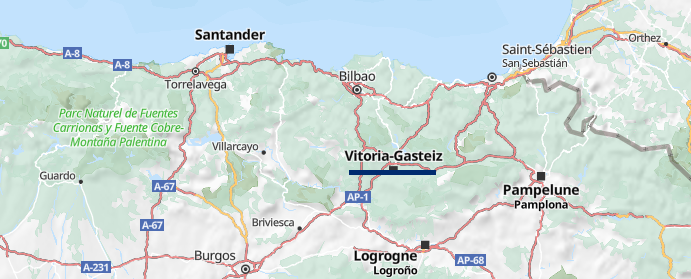 Nous poussons dans les terres afin de trouver une place de libre et nous allons jusqu'à Vitoria près de Bilbao.