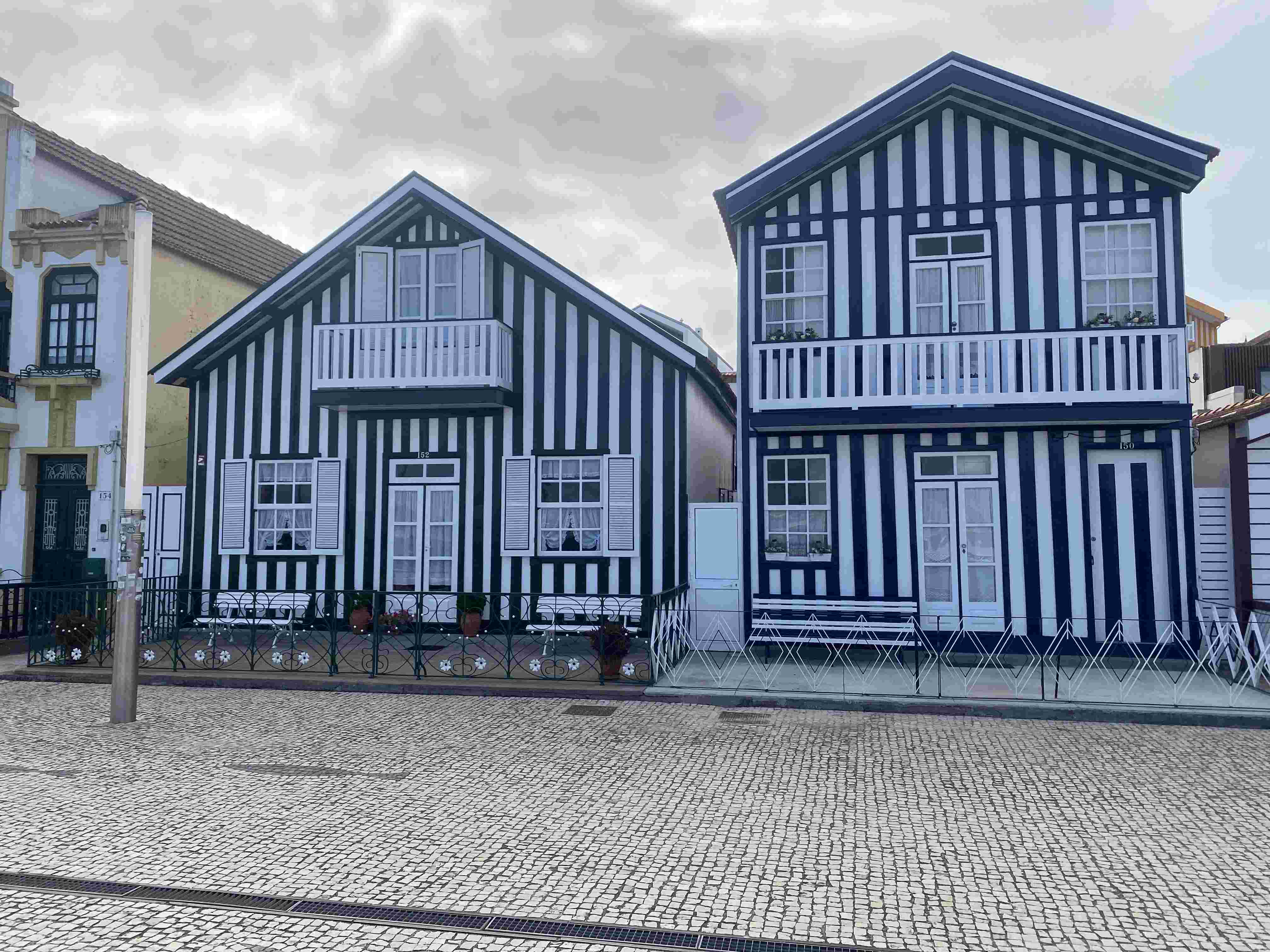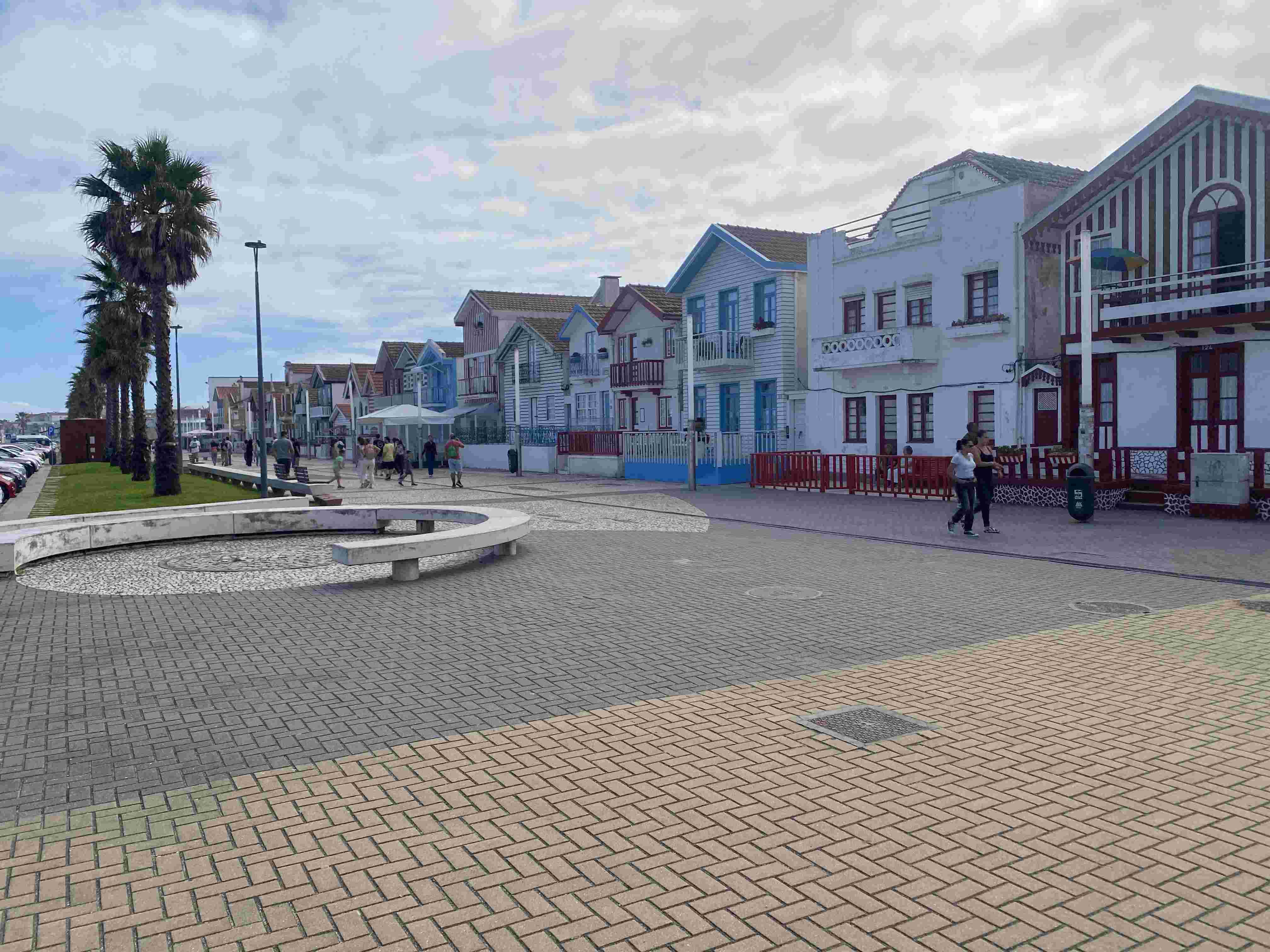 Un peu plus loin, nous nous arrêtons à Costa Nova, une petite ville au bord de l'eau avec la particularité que les maisons sont peintes à des bandes de couleur.